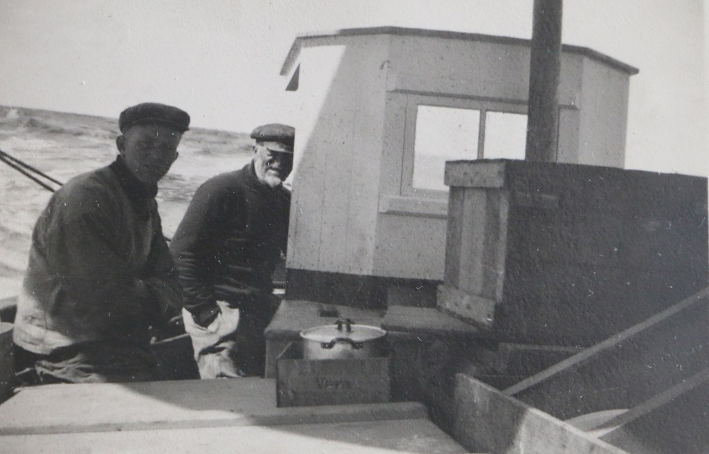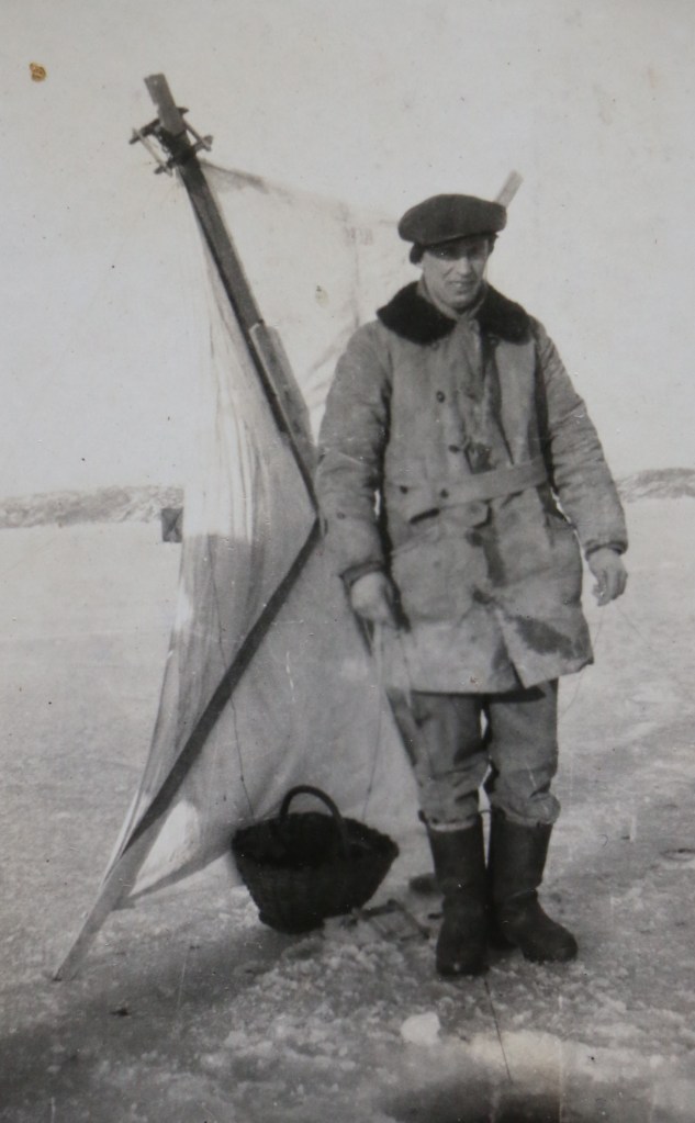 Helga och Charles. En av bröderna på isfiske. Johan på Hamneskär