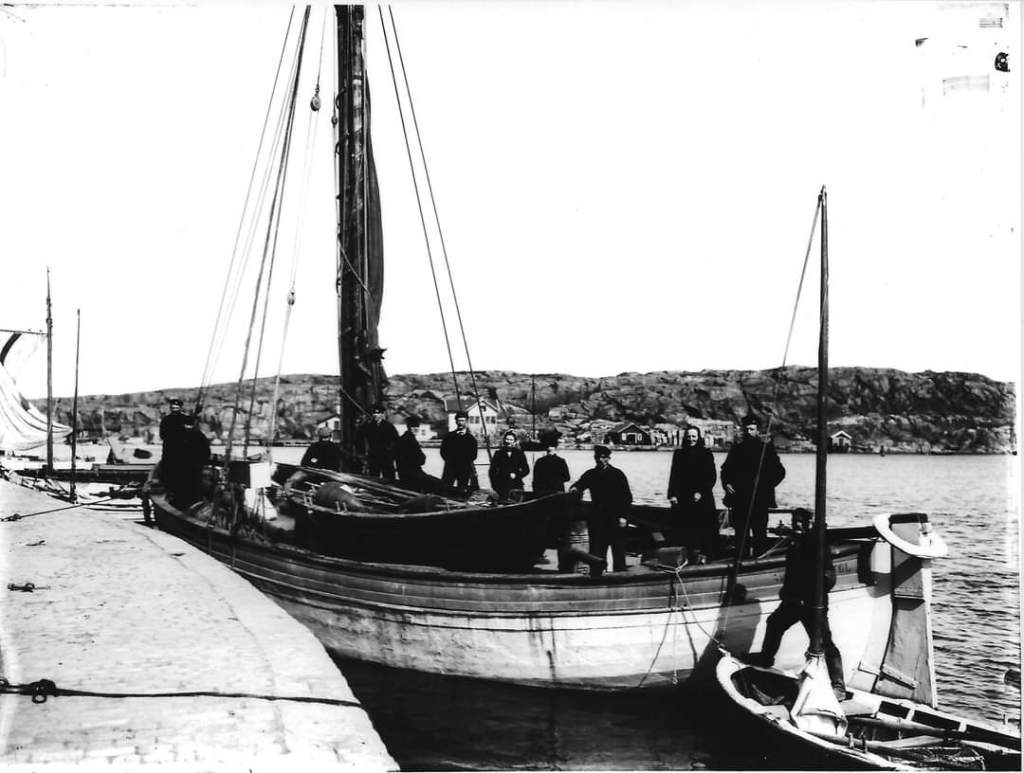 Fiskaren Anders Johan Olausson ”LillAnders” (1857-1937) med hustrun Vilhelmina Jansdotter (1867-1945) och deras gemensamma barn Anna Viktoria (1890-1958), Gerda Teresia (1895-1979), Karl Oskar (1897-1973), Agnes Hildegard (1899-1907), Ivar Valfrid (1901-1978) samt hans barn från tidigare gifte Olof ”LillOlle” (1881-1937). Anders och Vilhelmina gifte sig 8 dec 1889.