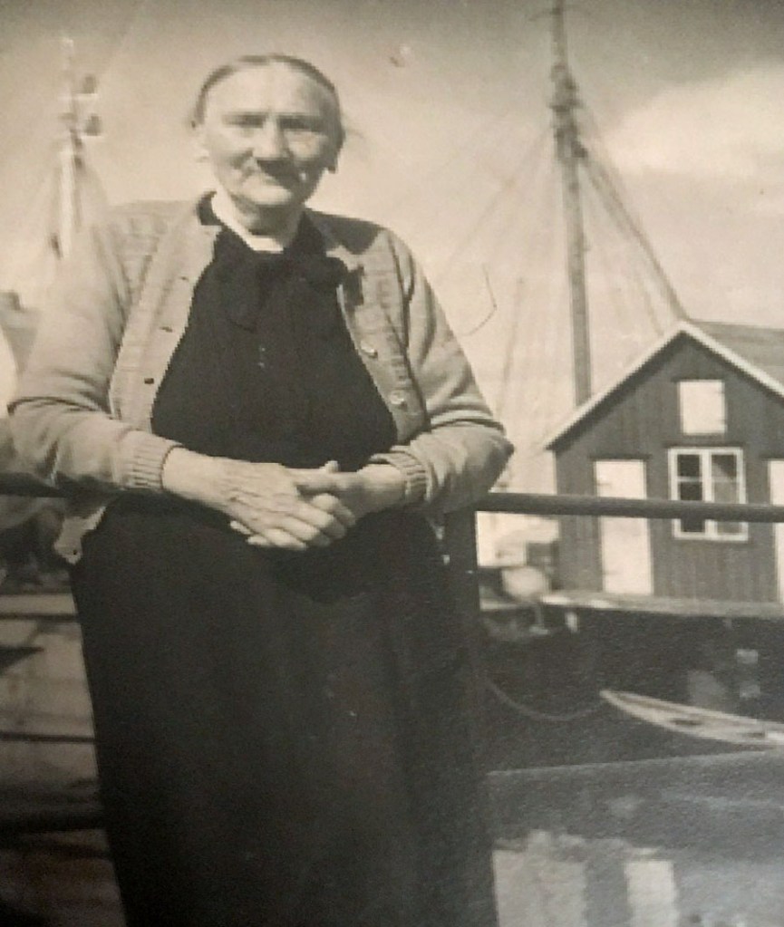 Justina. Maj 1922 skrivs hon in som ”tjänare” i Rönnängs Prästgård där hon stannar till september 1923. I Husf.längden står det också att hon flyttat in från” Lidingö Förs. i Stockholms län” april 1922. April 1924 gifter hon sig med Verner Johansson (1897-1967) från Hyppeln ”HyppleVerner” och i juli 24 stryks hon från föräldrahemmet och överflyttas till Öckerö. Men mars 1926 kommer hon tillbaka med man och två barn och bor hemma ett år tills de flyttar till eget hus oktober 1927. En intressant notering i Husf.längden är att prästen skrivit ”icke döpt” efter Justinas två barn som var födda -25 och -26 på Öckerö. 1924 startade Elimförsamlingen sin verksamhet på Åstol och förmodligen var Justina och Verner tidigt med i församlingen. Det var ju då något nytt och ovanligt att baptister och pingstvänner inte lät prästen döpa sina nyfödda barn.