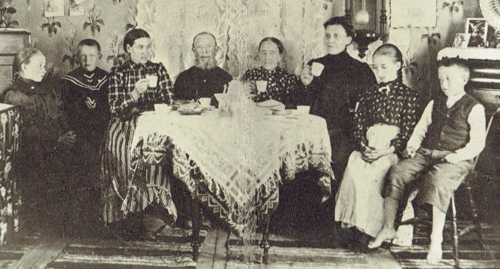 Albertina och barnen hos AbramsBern och farmor Anna Isaksdotter. Fr.v. Anna, Karl, Albertina, Bernt Abrahamsson, Anna Isaksdotter, Anna Beijer, Ellen och Vilhelm.
