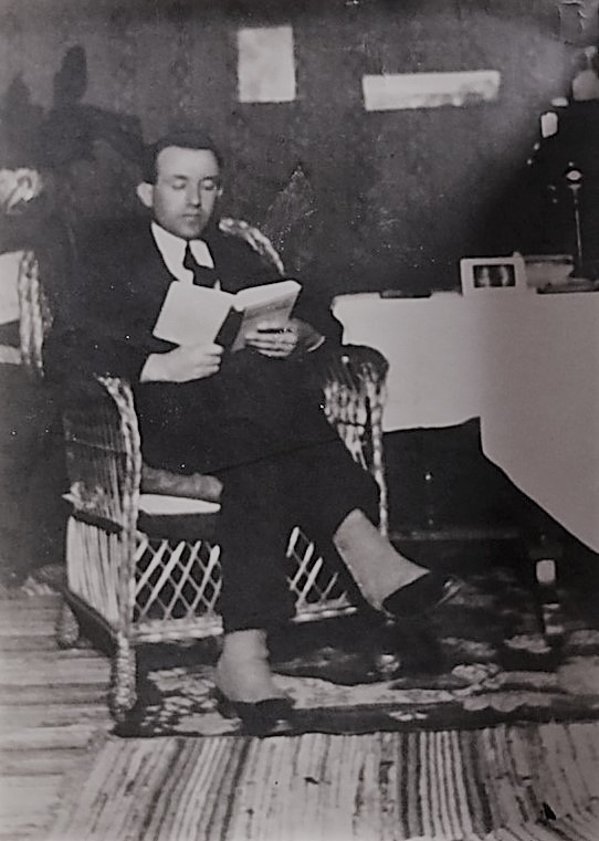 Vilhelm sitter i sitt föräldrahem och läser. Något han gärna gjorde.